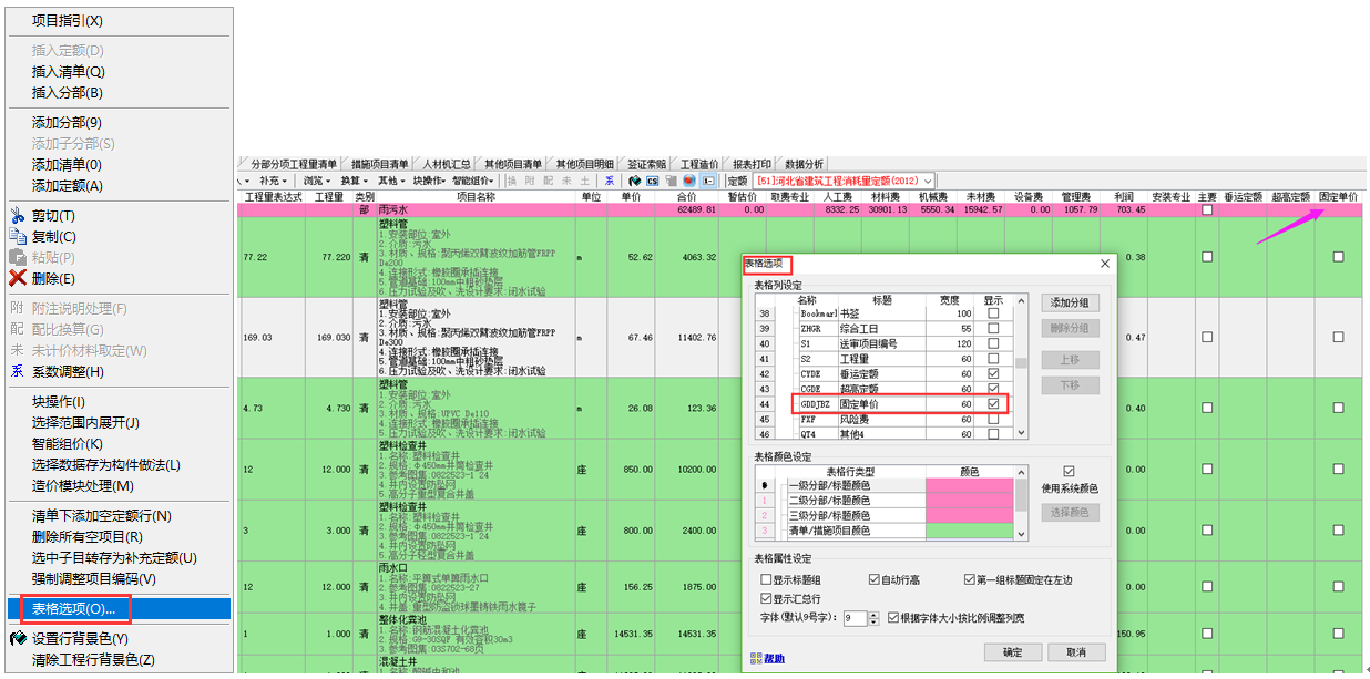 答:分部分項界面右健,表格選項,找到固定單價,把顯示勾選上,回到分部分項界面哪個清單要固定,在對應(yīng)的后面列勾選 。
