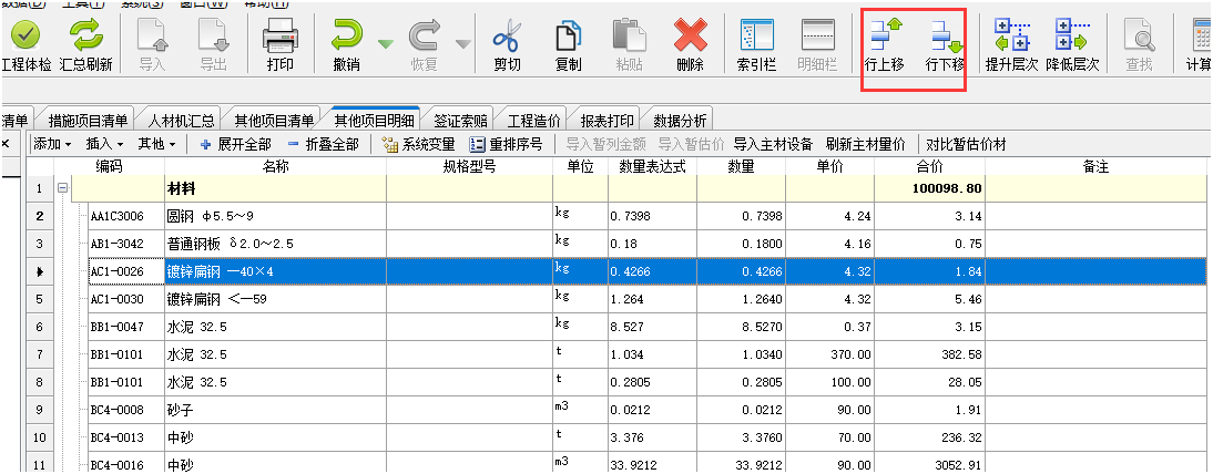 答:人材機(jī)界面勾選主要材料標(biāo)志后,切換到其他項目明細(xì)界面,點(diǎn)擊導(dǎo)入主材設(shè)備,在這個界面可以上下行移動排序。