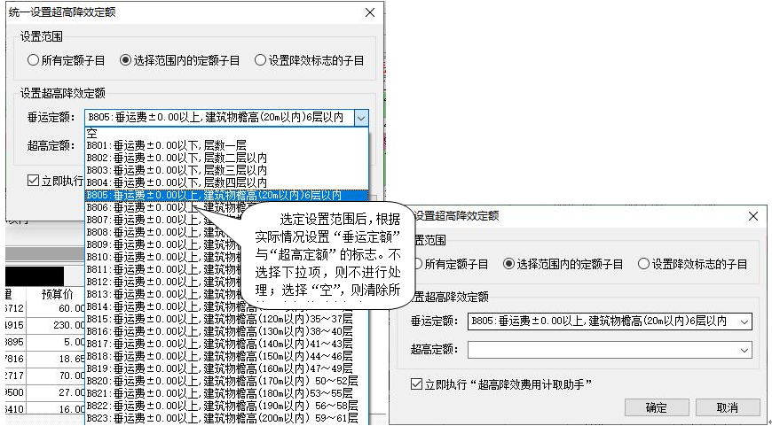(3)通過“塊操作”下的“統(tǒng)一設(shè)置超高降效定額”功能,可對選中的定額進(jìn)行統(tǒng)一設(shè)置超高降效標(biāo)志。如下圖所示: